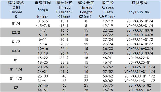 螺纹规格:公制(M)德制(PG)英制(G)